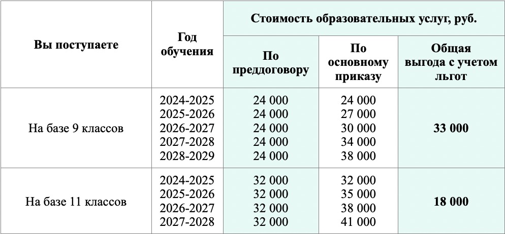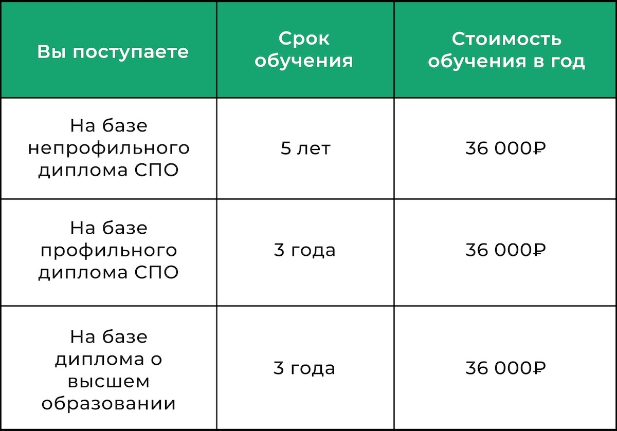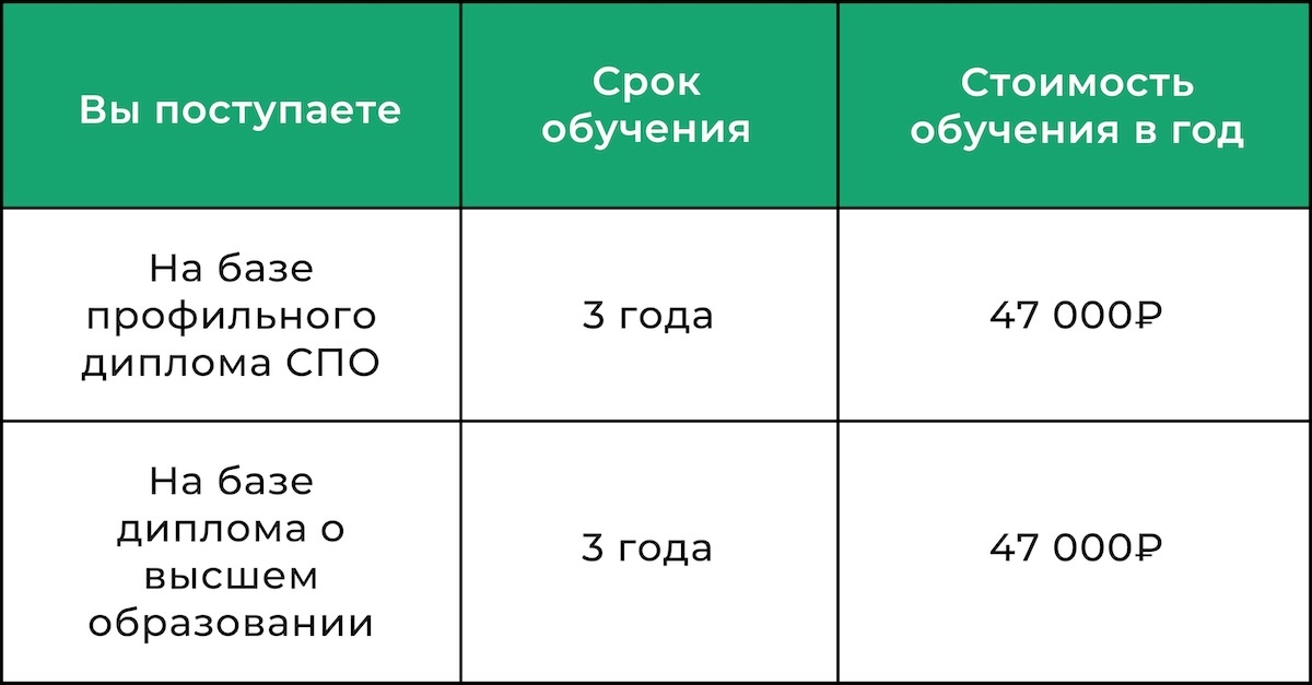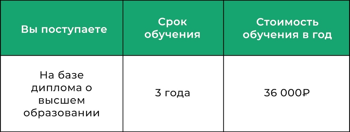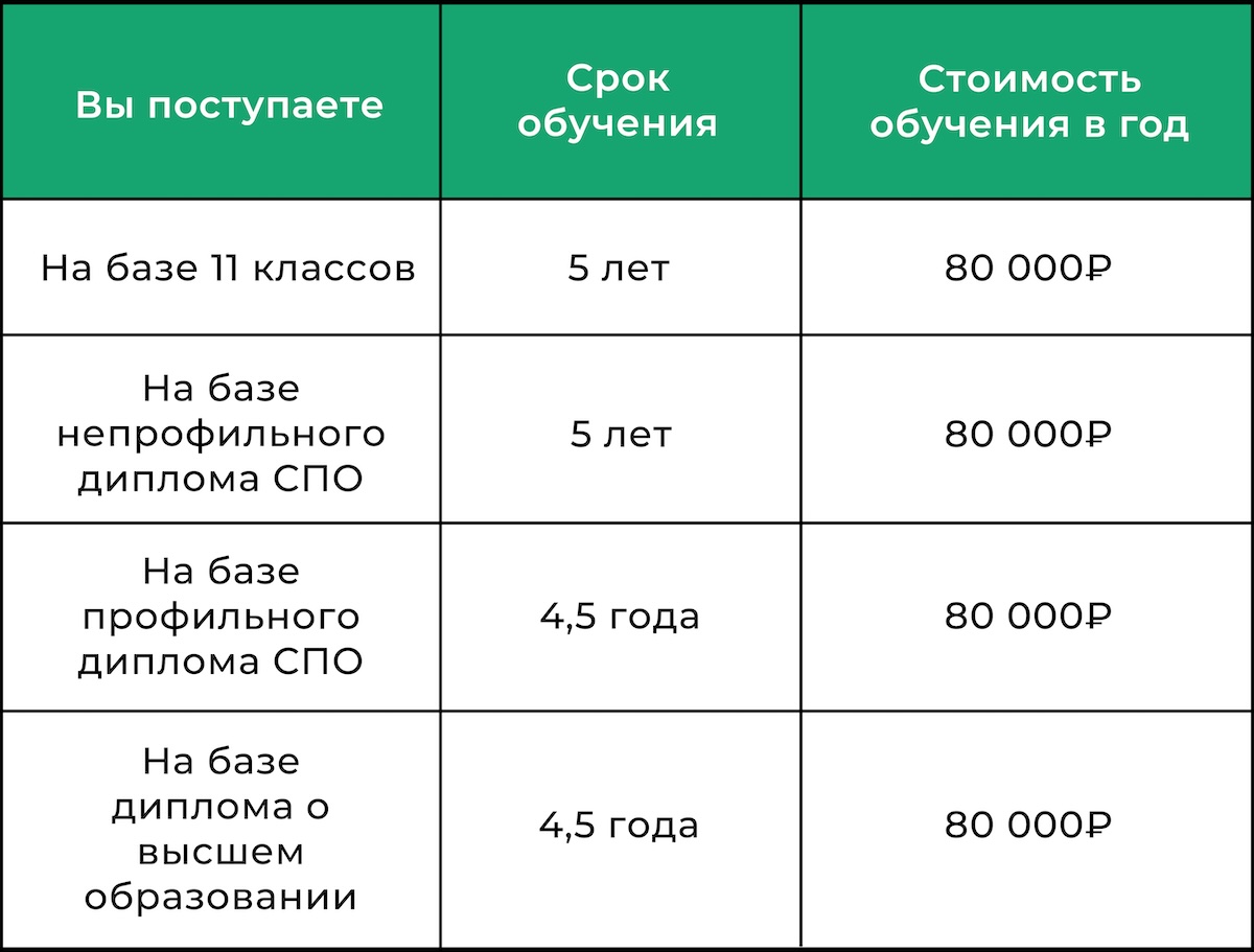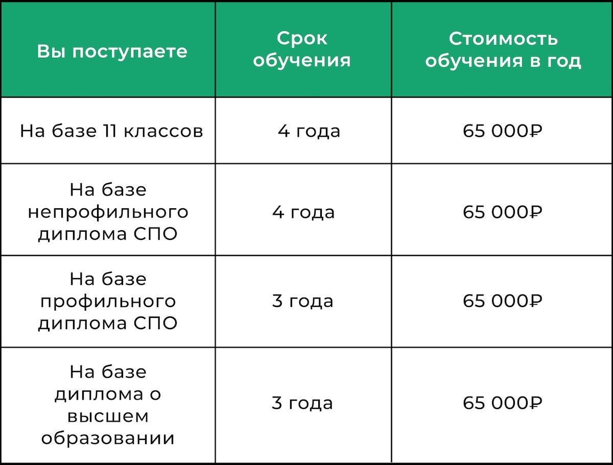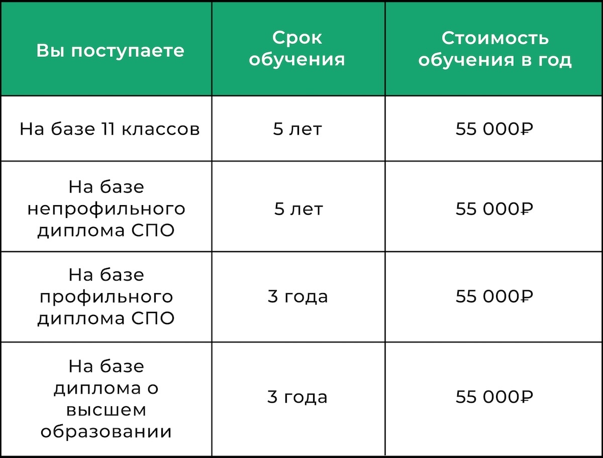 Вы можете узнать информацию о стоимости обучения, выбрав интересующую вас специальность/направление и форму обчения.